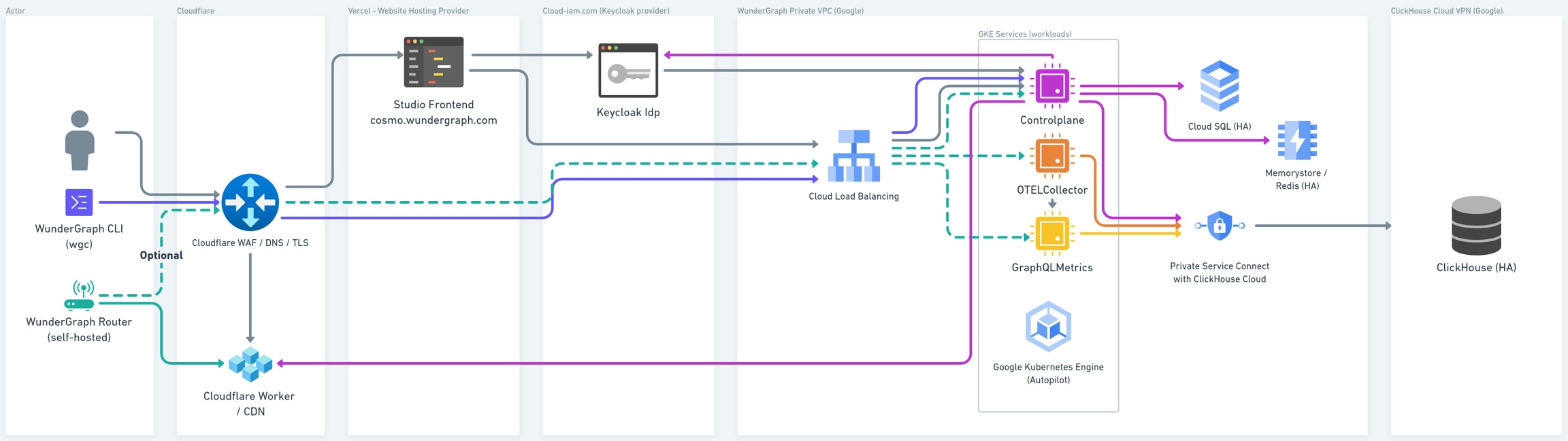 Some organizations operate under very strict regulation. WunderGraph Cosmo Cloud is SOC 2 compliant and fully fit for purpose. However, in the strictest of such scenarios and as a last resort, WunderGraph Cosmo can be fully self-hosted and self-managed. And our team of Solution Architects and Support Engineers stand ready to help navigate the increased costs and complexities that naturally arise in these scenarios. Indeed, the process of setting up any solution to satisfy security audits, SLAs, and other internal constraints, can be complex, time-consuming, and error prone—and self-hosting / self-managing WunderGraph Cosmo is no exception. From ensuring end-to-end encryption, to configuring every component correctly, our team is ready to help create scalable, maintainable, and healthy deployments that shine even in the toughest of conditions. Teams turn to WunderGraph for help with:- Network Architecture & Security;