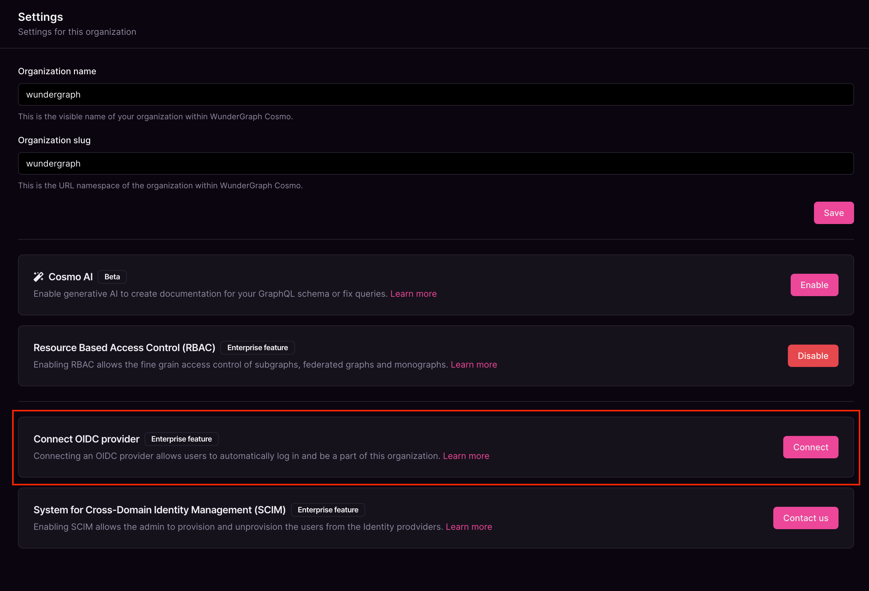 Give the connection a name, paste the OpenID Endpoint Configuration copied before, into the Discovery Endpoint,and paste the Client ID and Client secretcopied before into the Client ID and Client Secret fields respectively,and then click on Connect.